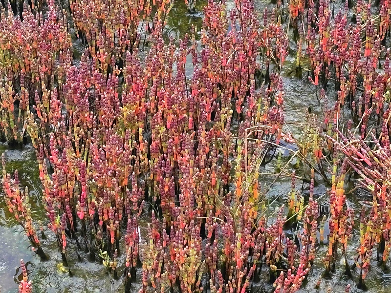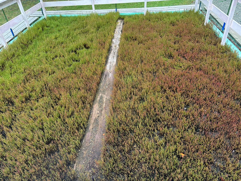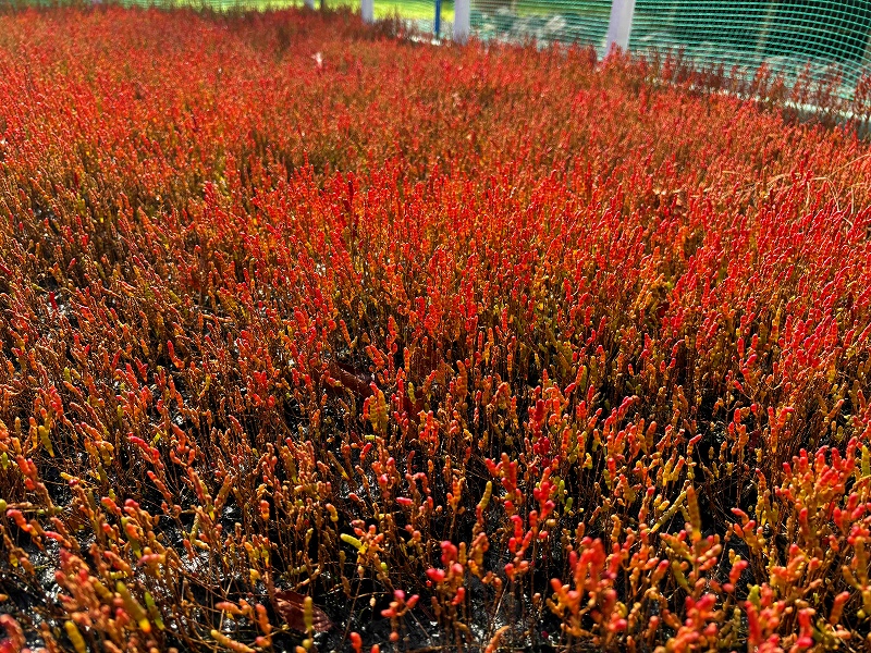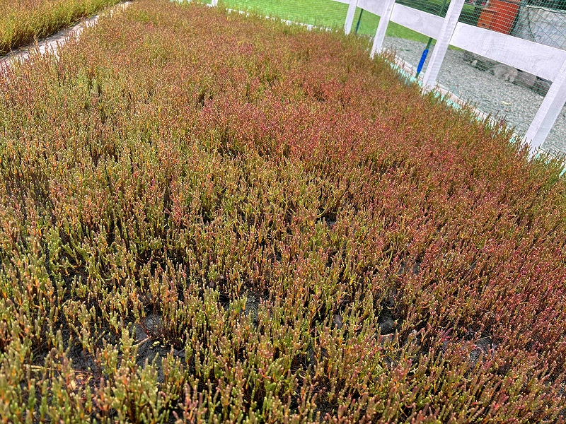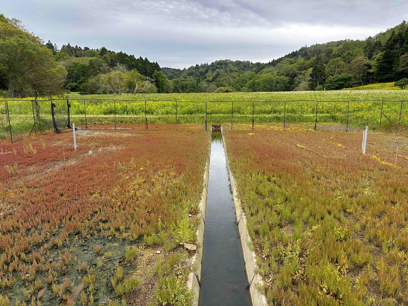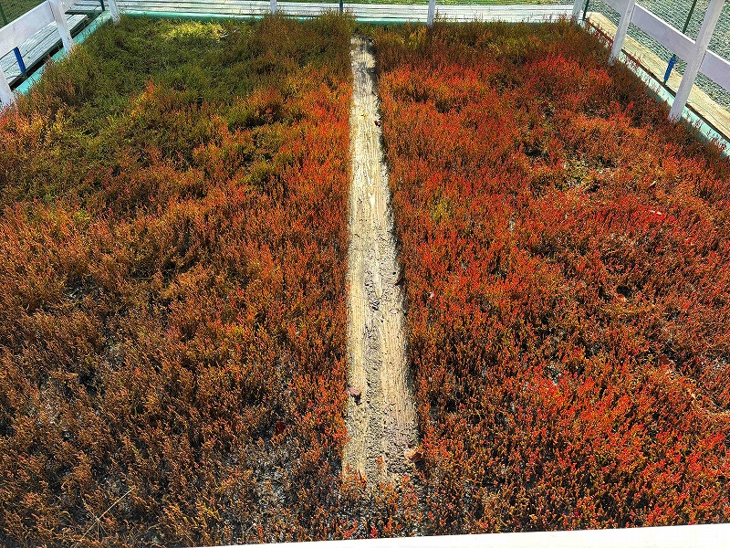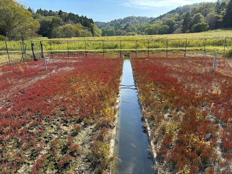 昨年は一部アッケシソウが引き抜かれていた(エゾシカが原因と思われる)箇所があったため、昨年度同様にエゾシカ対策のためネットも張りました。