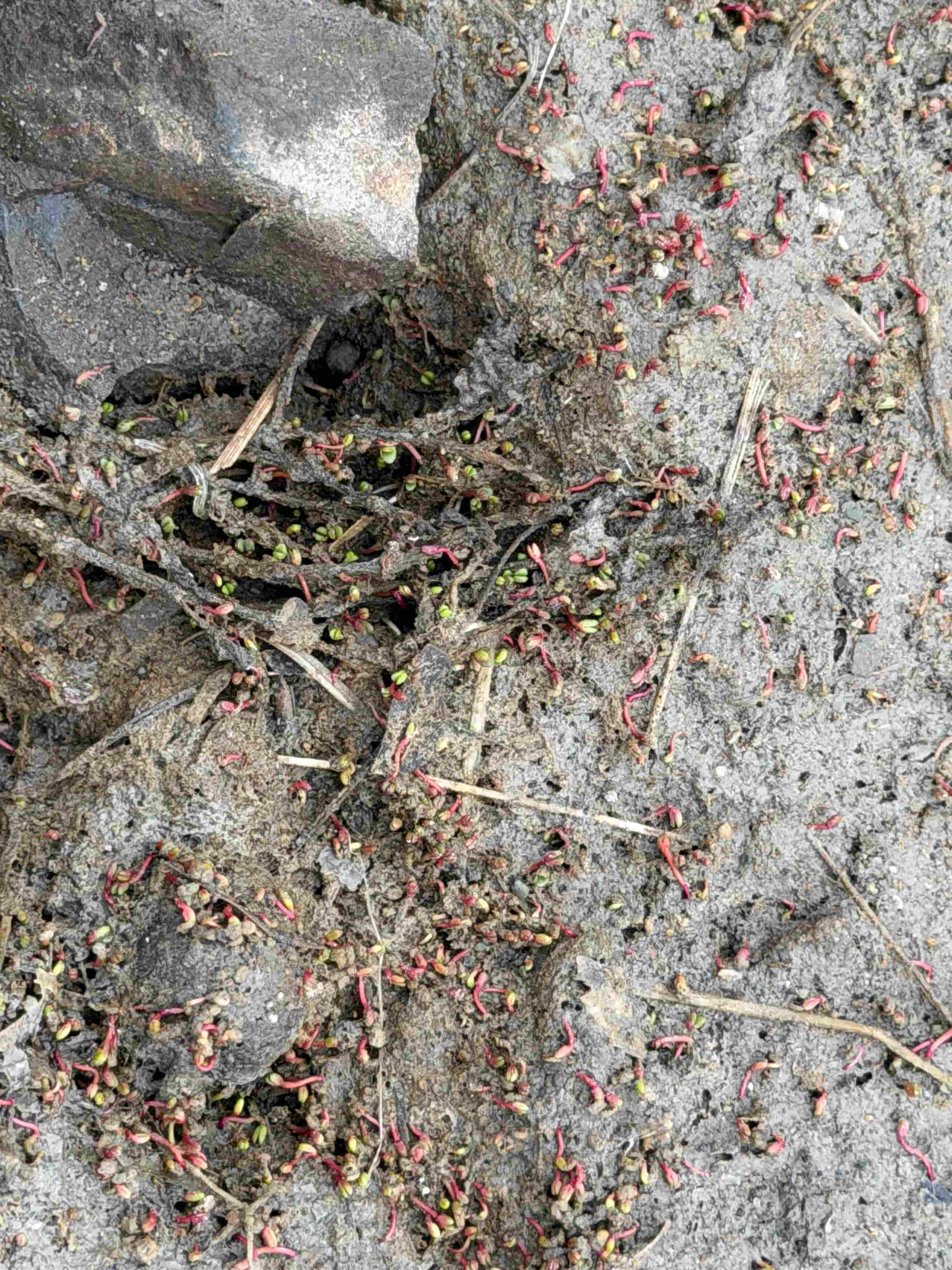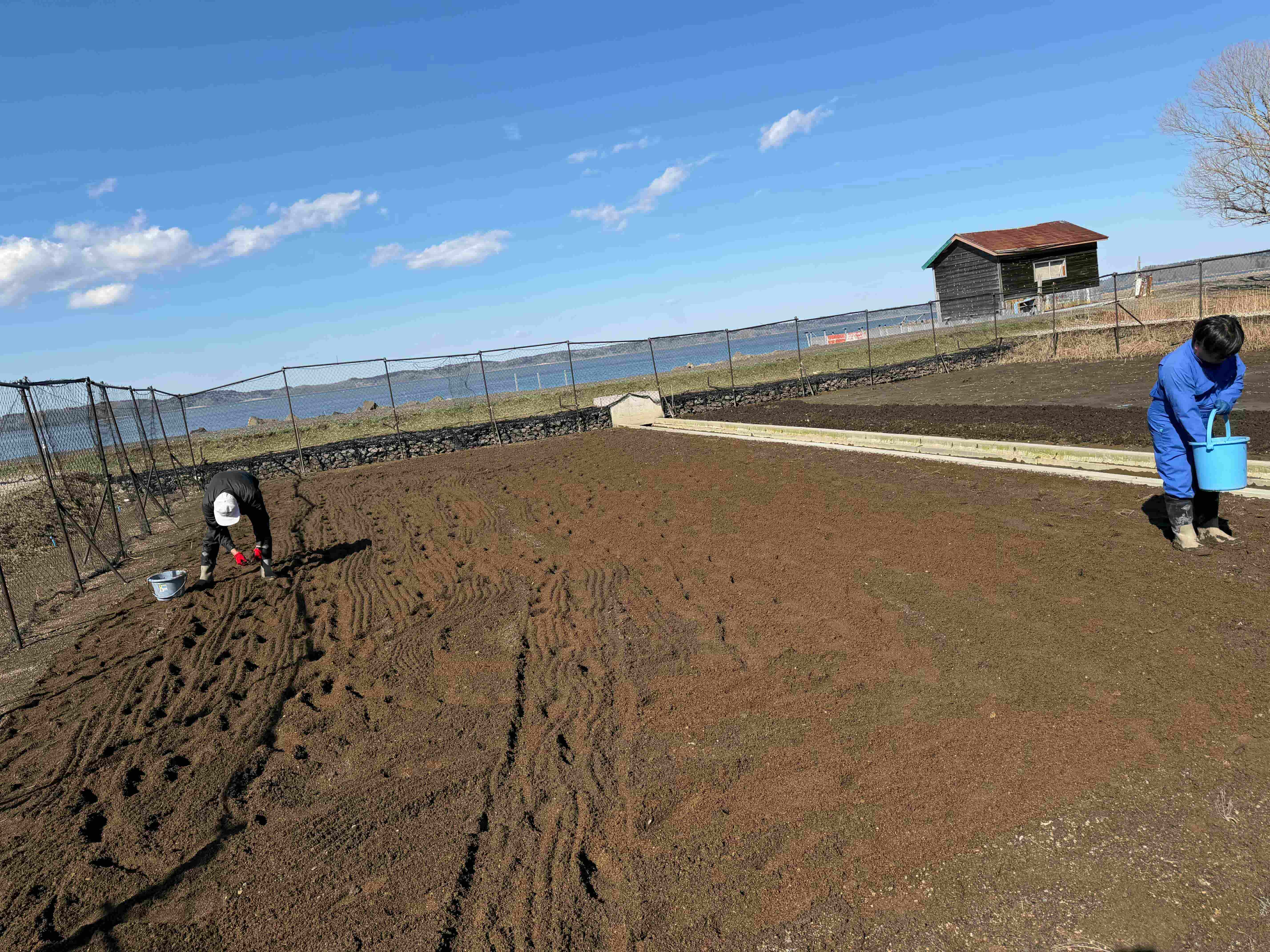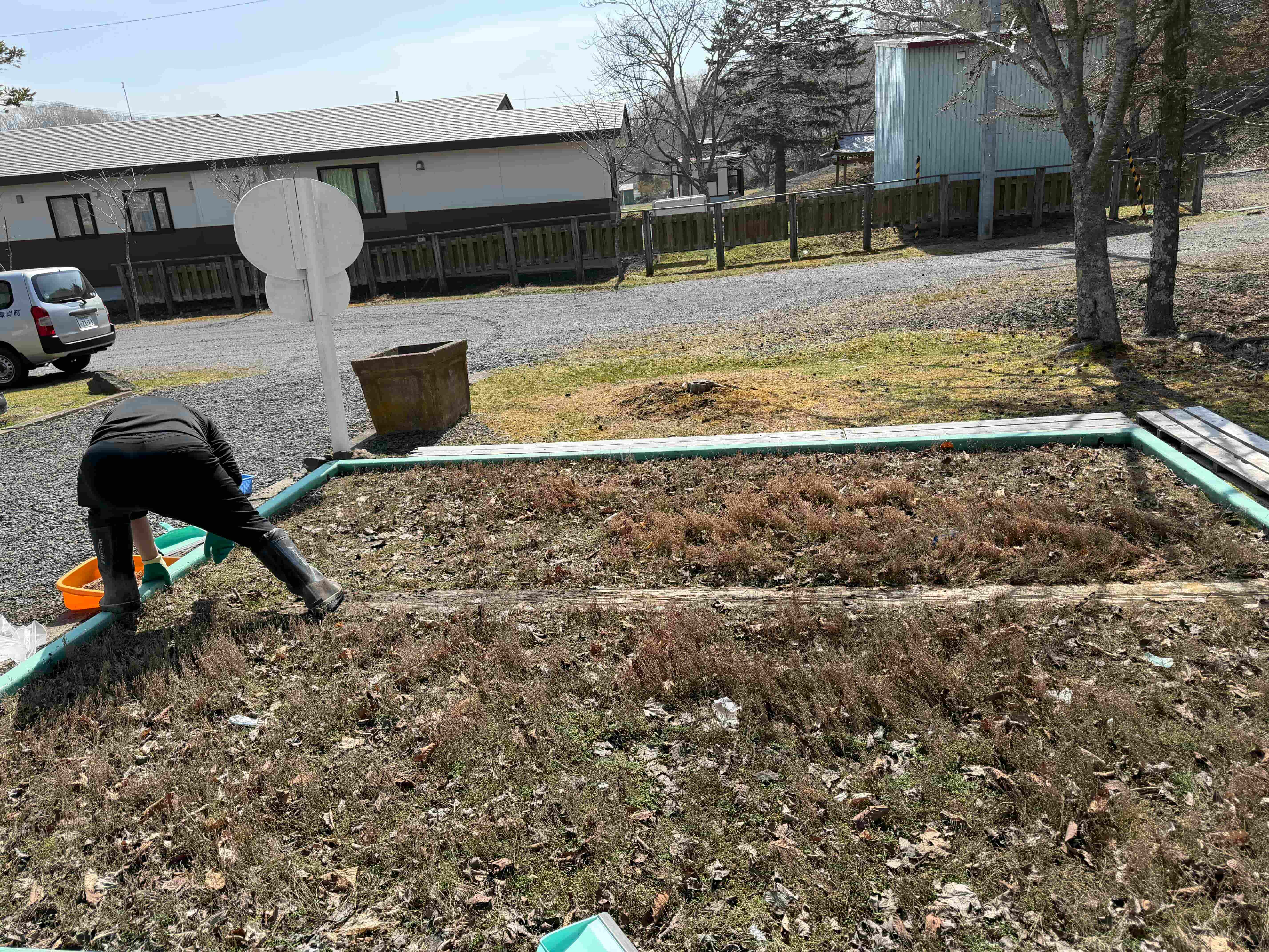 こちらも昨年度紅葉したアッケシソウの種からすでに発芽していたので、耕耘と播種は行わず枯葉などの除去を行いました!