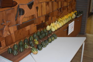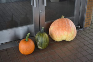 朝、学校に来ると玄関先に大きなかぼちゃが・・・ 内玄関には小さめのかぼちゃがたくさんダンボールに・・・