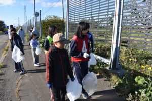 4つのグループに分かれ、小学校、中学校の周辺をゴミ拾いしました。