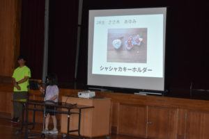 工作、調べた物、旅行の記録、料理など、夏休み中に体験したことを全員が発表しました。発表では、子ども達それぞれが体験したことをタブレットにまとめ、画像や動画を見せながら説明していました。また、発表が終わった後は、聞いていた子ども達が積極的に質問や感想を述べていました。保護者のみなさんにも来ていただきご覧いただきましたが、どの子も緊張することなく、堂々と発表していました。冬休み体験発表会も楽しみです。