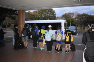 見送りのお母さん方に、これまで学習してきたことを発揮してくると誓い、感謝を述べて行きました。