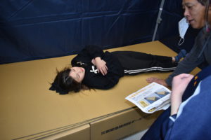 昨年に引き続き、中学校、地域の方々と合同で「防災教室」を行いました。津波警報、大津波警報が発令されると、本校近くの施設「らくとぴあ」が避難所になります。7月30日に発生した地震のときも避難所になり、多くの方々が避難してきました。