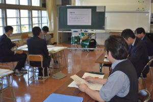 授業後の研究協議では、良かった点や改善点が話し合われ、指導主事、指導室長のお2人からも指導、助言をしていただき、とても有意義な研修となりました。