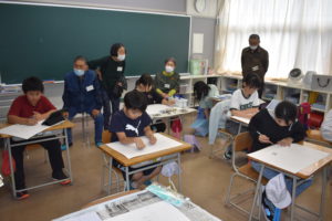 普段と違う雰囲気の中での授業でしたが、普段通りに学習をすすめる子どもたちに感心させられました。