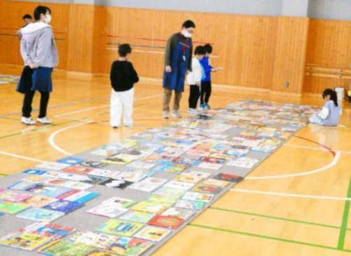 選書の時間では、体育館に表紙が見えるように並べられていたので、子どもたちの興味・関心をよりひいていました。読書の時間に読めるように、1人5冊の本を選び、学校に保管しています。また、仕掛け絵本コーナーも設けられ、思い思いに楽しみながら本に触れる機会となりました。