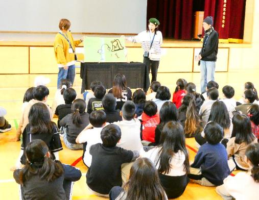 2・3時間目に、全校児童が体育館に集まり、太田小学校と合同の芸術鑑賞が実施されました。和心ブラザーズによる和太鼓や津軽三味線、フルートによる和洋楽器演奏の公演です。子どもたちは、3つの楽器でアレンジされたソーラン節などの曲に歓喜したり、太鼓のリズムに合わせて手拍子をしたりと大興奮の様子でした。これまでコロナ禍ということもあり、4年ぶりの開催でした。芸術に触れ、芸術に対する理解を深める良い機会となりました。