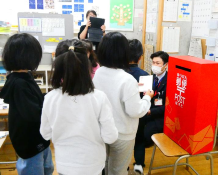 日本郵便の方々のご協力を得て、2・5年生を対象に年賀はがきの書き方を中心とした手紙の書き方体験授業を実施しました。郵便の仕組みを知り、実際に年賀はがきを書き、投函体験を行いました。